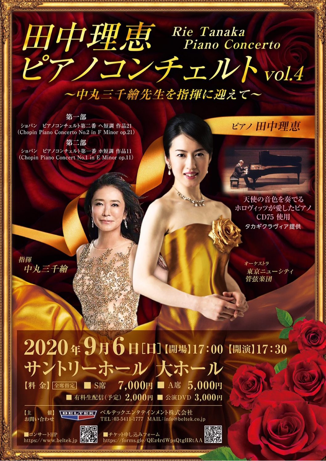 2020年9月6日(日)田中理恵ピアノコンツェルトVol.4のお知らせ