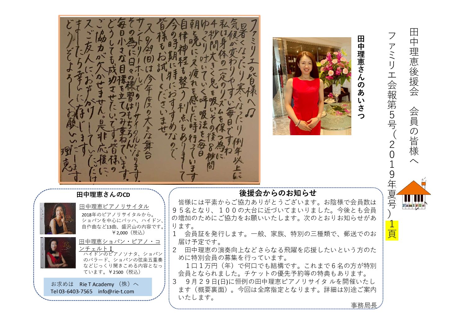 2019年9月29日 田中理恵ピアノリサイタルvol.3のお知らせ